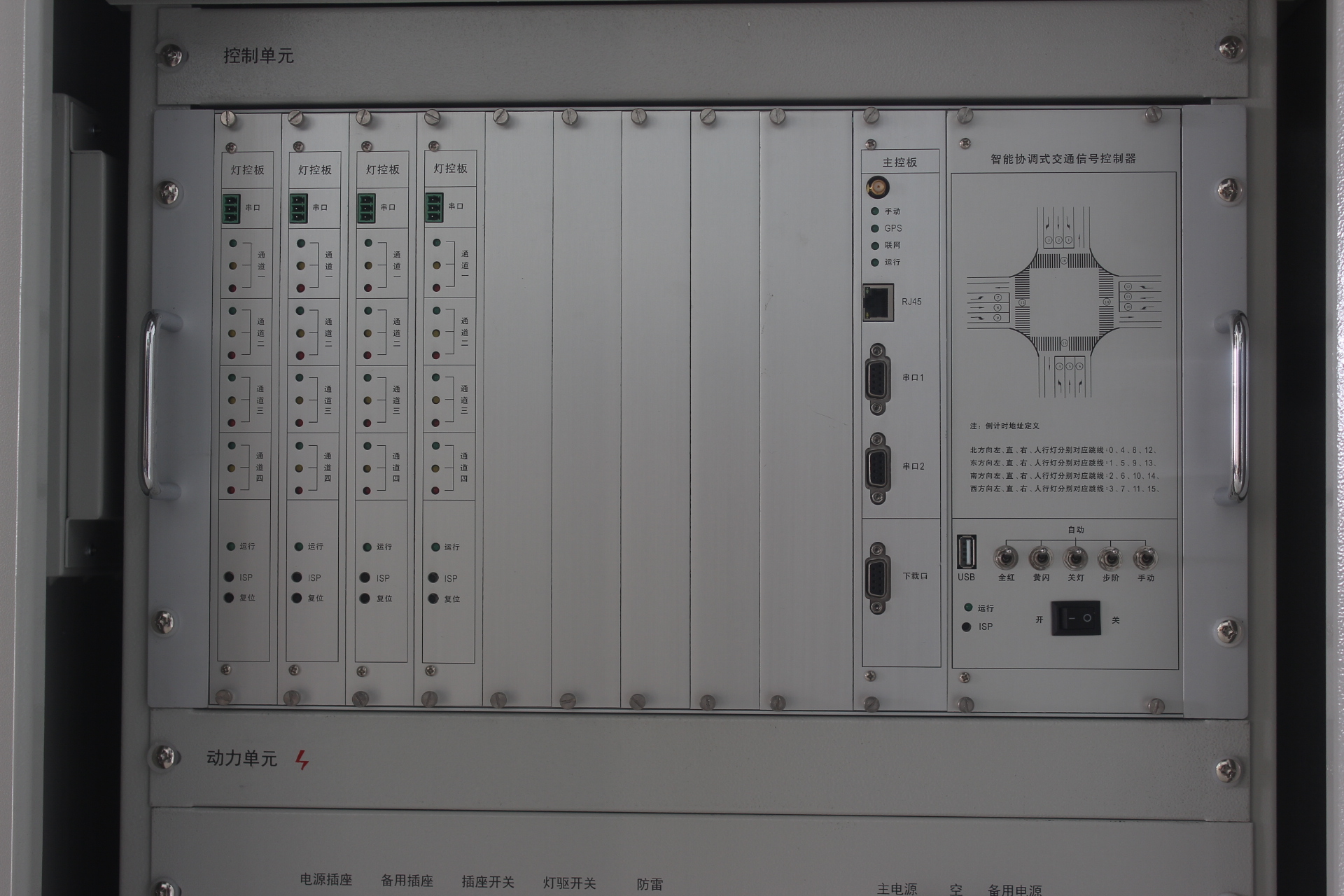 1、该交通信号机采用6U模块插卡设计,板卡模块包含:电源及环境监测模块、主控制模块、优化控制模块、灯驱控制模块、线圈视频/地磁检测及接口模块等。
